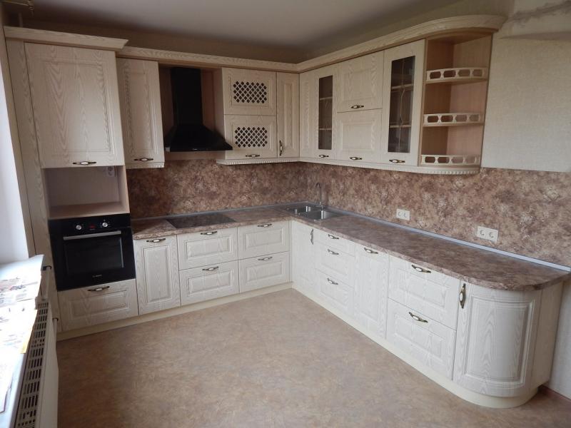 Кухонные гарнитуры по индивидуальным проектам с фасадами из мдф облицованными пленкой пвх. При изготовлении кухонного гарнитура возможно нанесение различных видов фрезеровок на фасады, использование радиусных фасадов, фасадов со стеклом.