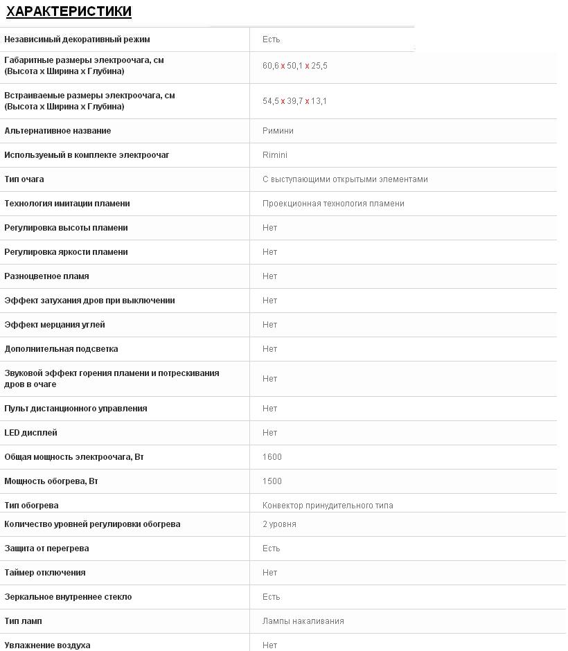 Габаритные размеры электроочага, см