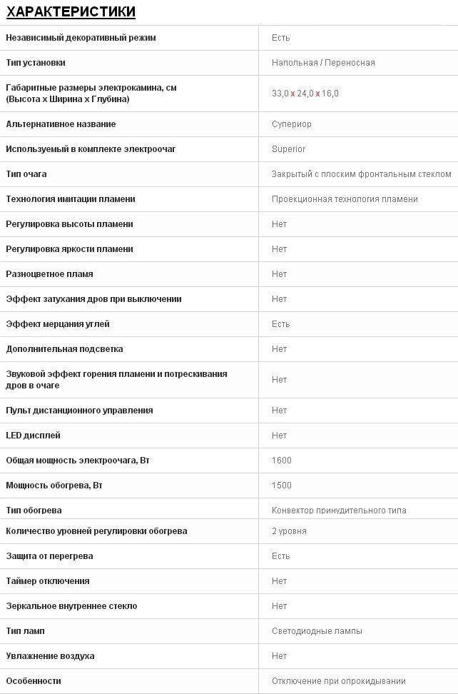 Габаритные размеры электрокамина, см