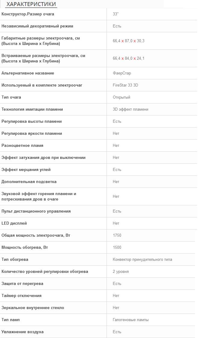 Габаритные размеры электроочага, см