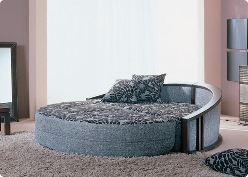 Круглая кровать выполняется в различных тканях. Оригинально смотрится в двухцветной комбинации: основа + компаньон.
