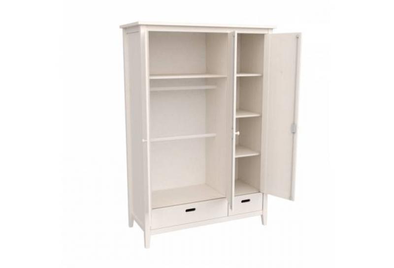 Наполнение - правое отделение 4 полки, левое двудверное - полка и 2 штанги для одежды, два выдвижных ящика