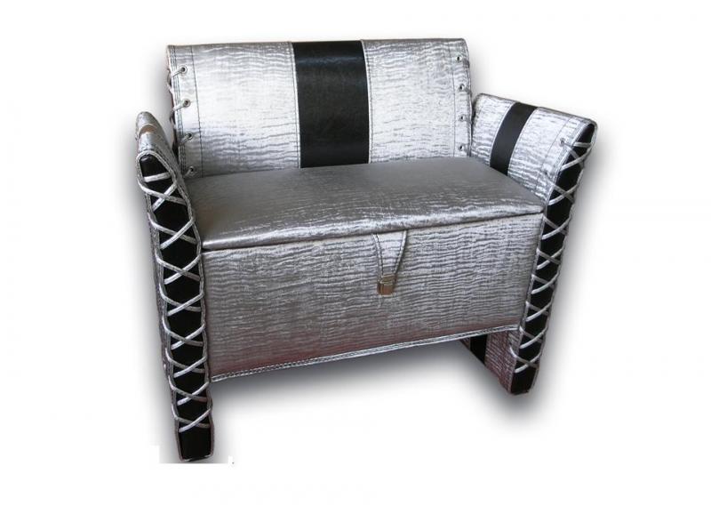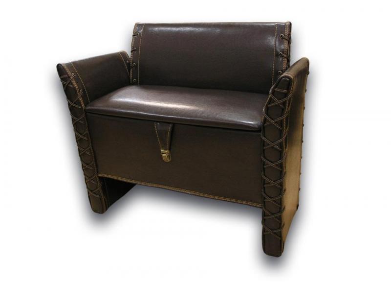 Банкетка «Е» немного приподнята над полом. Она может быть изготовлена в разных цветовых вариантах. Декоративные швы на ручках и спинке придают модели утонченный вид. Удобно, что изделие оборудовано вместительным коробом для хранения вещей, который расположен под сиденьем.