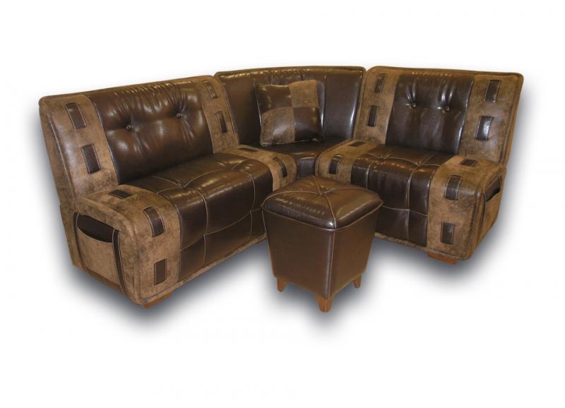 Каркас изготавливается из хвойной древесины. Этот материал является экологически чистым и износостойким. В качестве обивки предлагается искусственная замша или кожзаменитель. Довольно часто их комбинируют, создавая индивидуальный стиль. Эластичная набивка на основе синтепона делает сиденье удобным и мягким.