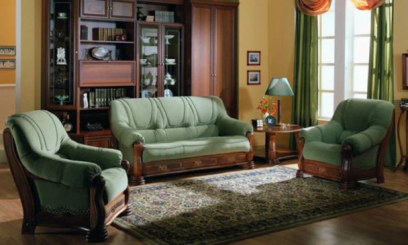 — в креслах встроены ящики с металлическими ручками на деревянных направляющих (в виде желоба). На диване ящики имитируются декоративной накладкой